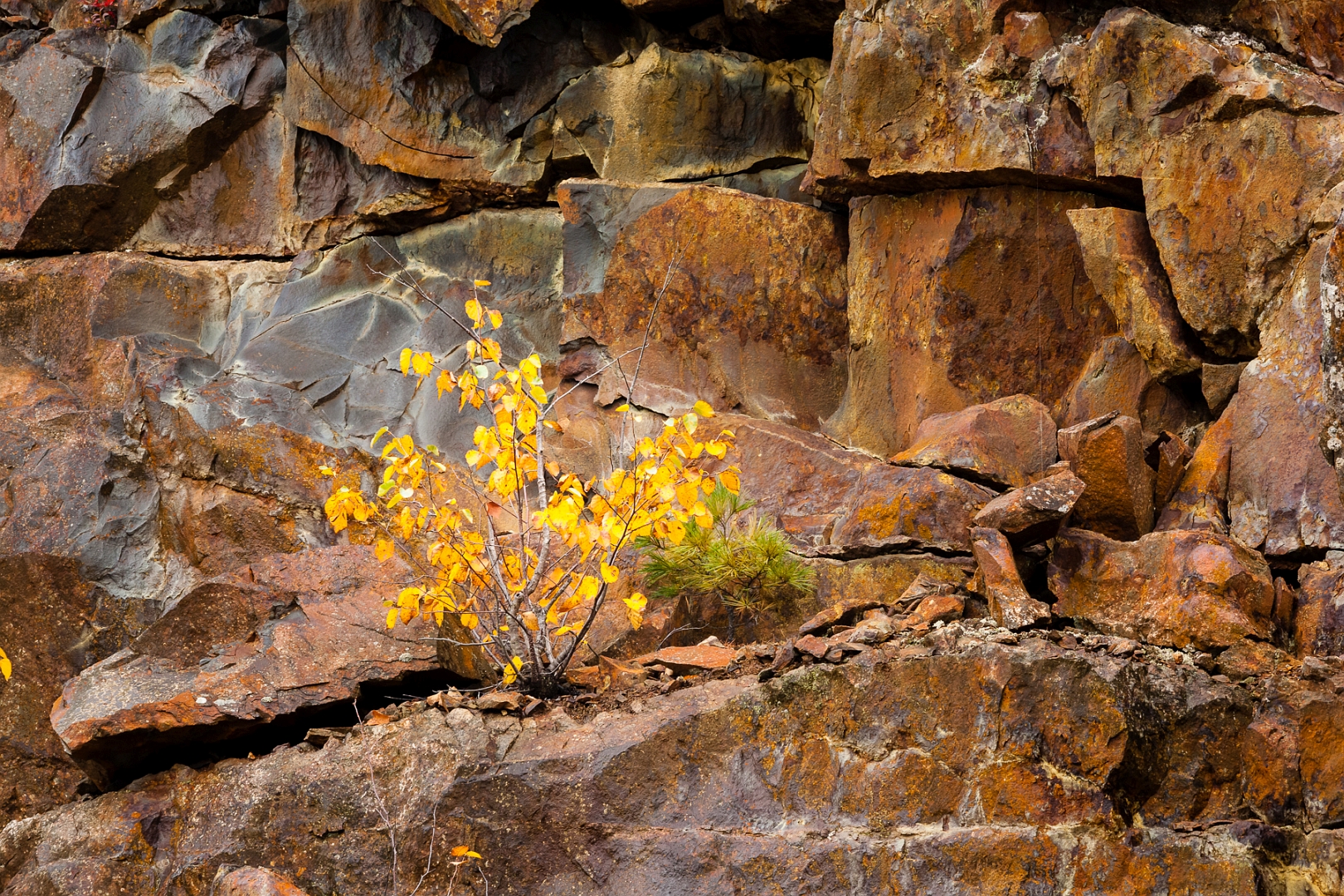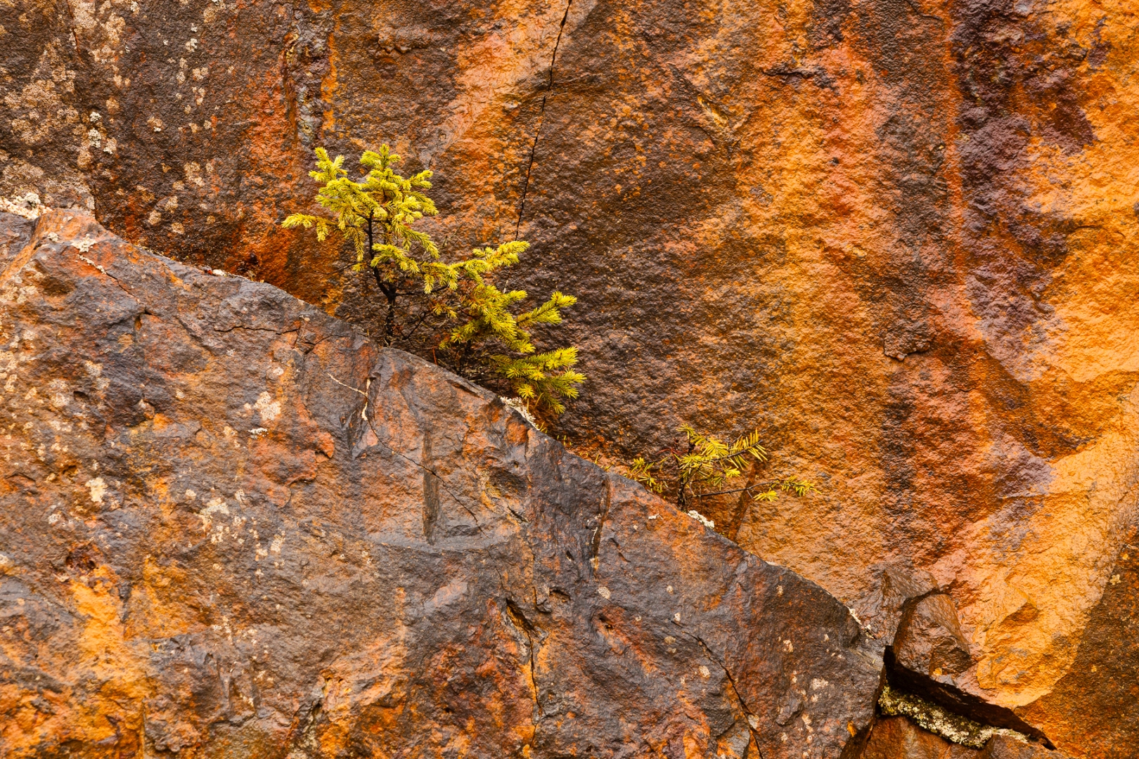 Rocks with Plants/Trees; With plants/trees growing out of rock crevices, how do they get enough nutrients to survive in this situation? How big will they grow and how long will they last? These are just some of the questions or feelings your images could say. There are many opportunities for this type of image, so just go out with your camera and keep an open mind.