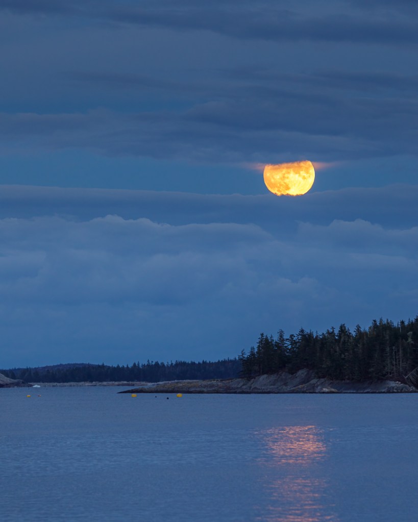 First we start with closeup images of the moon with no landscape taken with a longer focal length. The first image is taken when the moon is higher in the sky and as a result there is no colour. The second image is an image of the moon that was not at the horizon and a bit higher in the sky but the colour was influenced by the atmosphere due to the smoke dust from the forest fires across Canada that year. The third image is more dramatic due to the clouds and the light off the moon and clouds creating a more dramatic image. Remember to keep an eye on the news and the weather to determine when it is a good time to go out and capture your image.