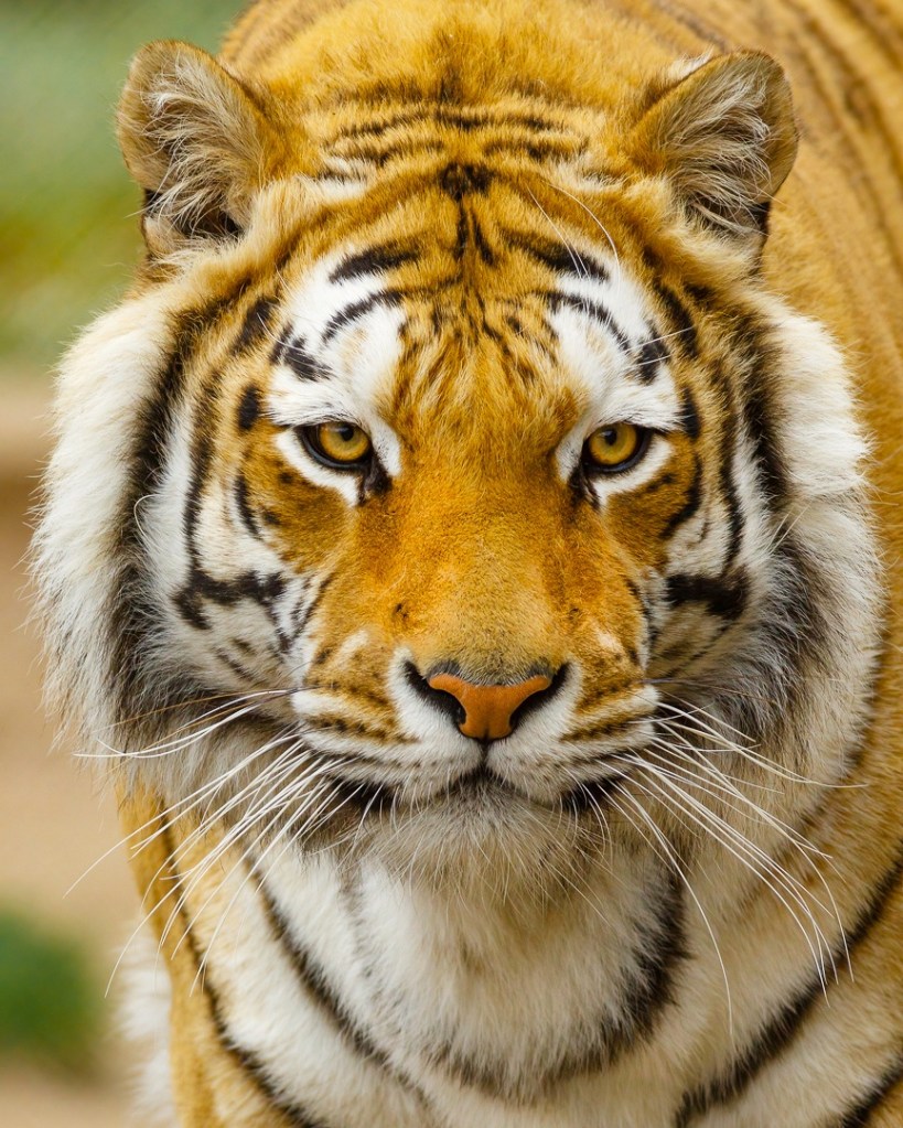 The first image of the Siberian Tiger, Zarina, was taken at a low angle, remember its important to get to eye level so the viewer feels connected to the subject. This image was taken at Oaklawn Farm Zoo as the Tiger was pacing around the pen. I used a longer focal length, 400mm, to isolate the head and neck of the subject removing the fencing from the right side of the subject and minimizing the background which is also out of focus due to the focal length, aperture and position of the subject away from the camera and background.