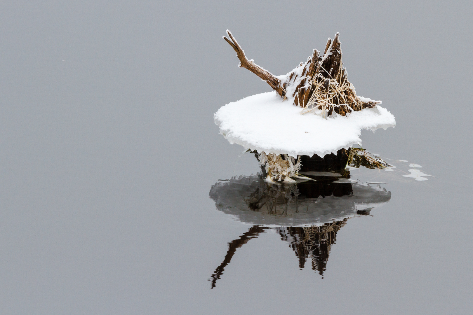 Snow can help remove distractions in the landscape to create a more minimalistic image and also so how resilient subject elements in your image can be. Depending on the overall conditions and camera colour temperature setting used an image can project a cold and remote feeling to the viewer.