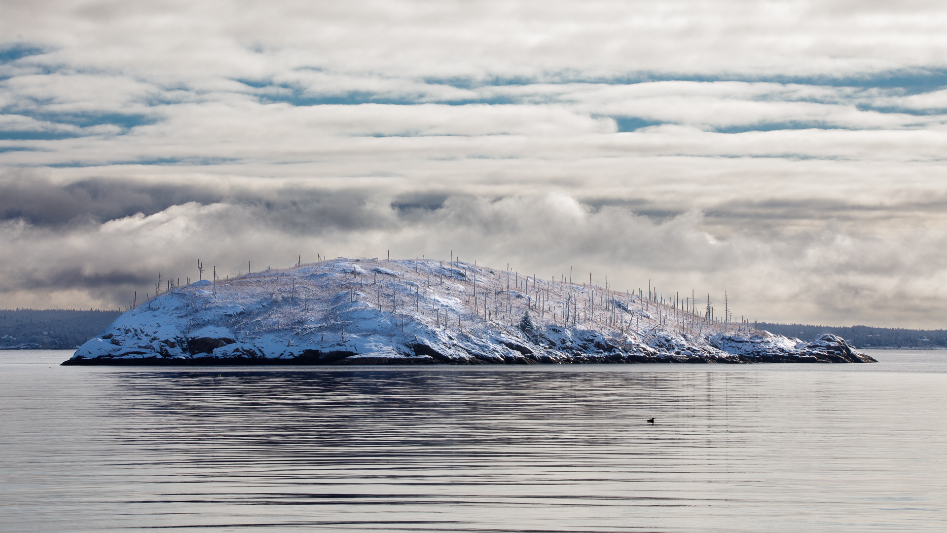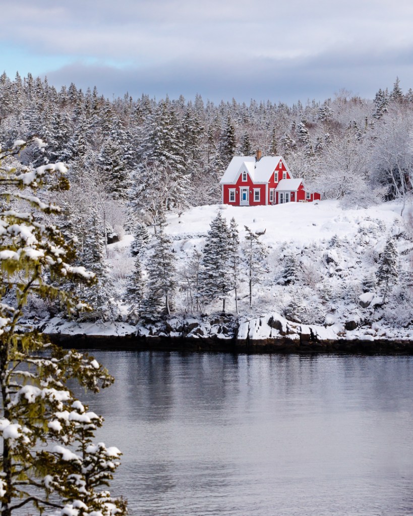 Go around your local area to see what you can find; Horse Island at the mouth of Northwest Cove for example used to be full of trees, but many years of too much cormorant and gull excrement caused the tress to be over fertilized and die off, and with the snow makes the island look more barren while also making the tree trunks stand out. The trees, boat launch, and fishing shack covered in snow creates a less chaotic image which makes it easy to pick out the dories (boats) as the subject. Make use of colour to have your subject stand out, such as the red house which pops out of the image against the white snow at the mouth of Aspotogan Harbour.