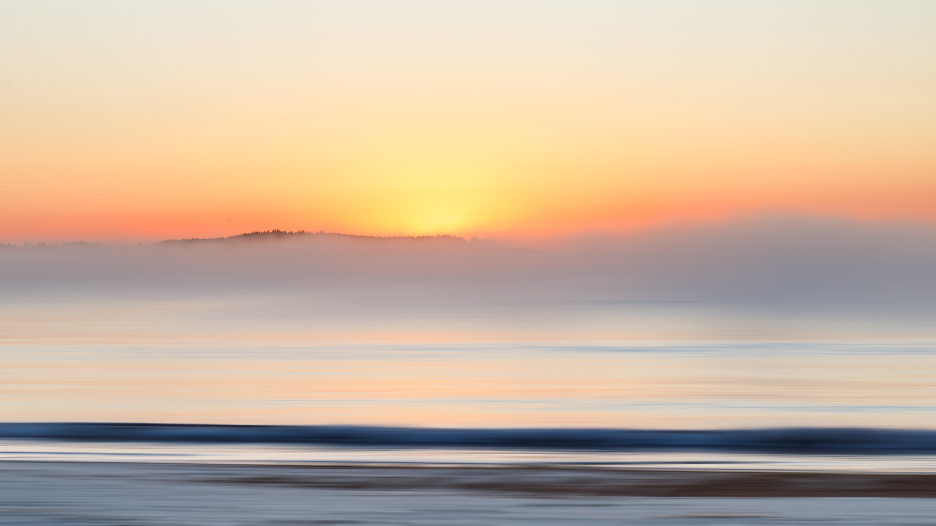 Three of the images below use a boat as a main subject with lots of negative space. The last image shows a beach at sunrise created from one single image; one layer using path blur in Photoshop to simulate horizontal intentional camera movement (ICM) and the second layer was as shot, then the two layers were combined using a simple soft brush mask with the blending point where the fog and ocean meet, which helped the subject, the sun breaking over the island, standout because the ICM technique softened the distractions of the sand, seaweed, and ocean in the foreground.