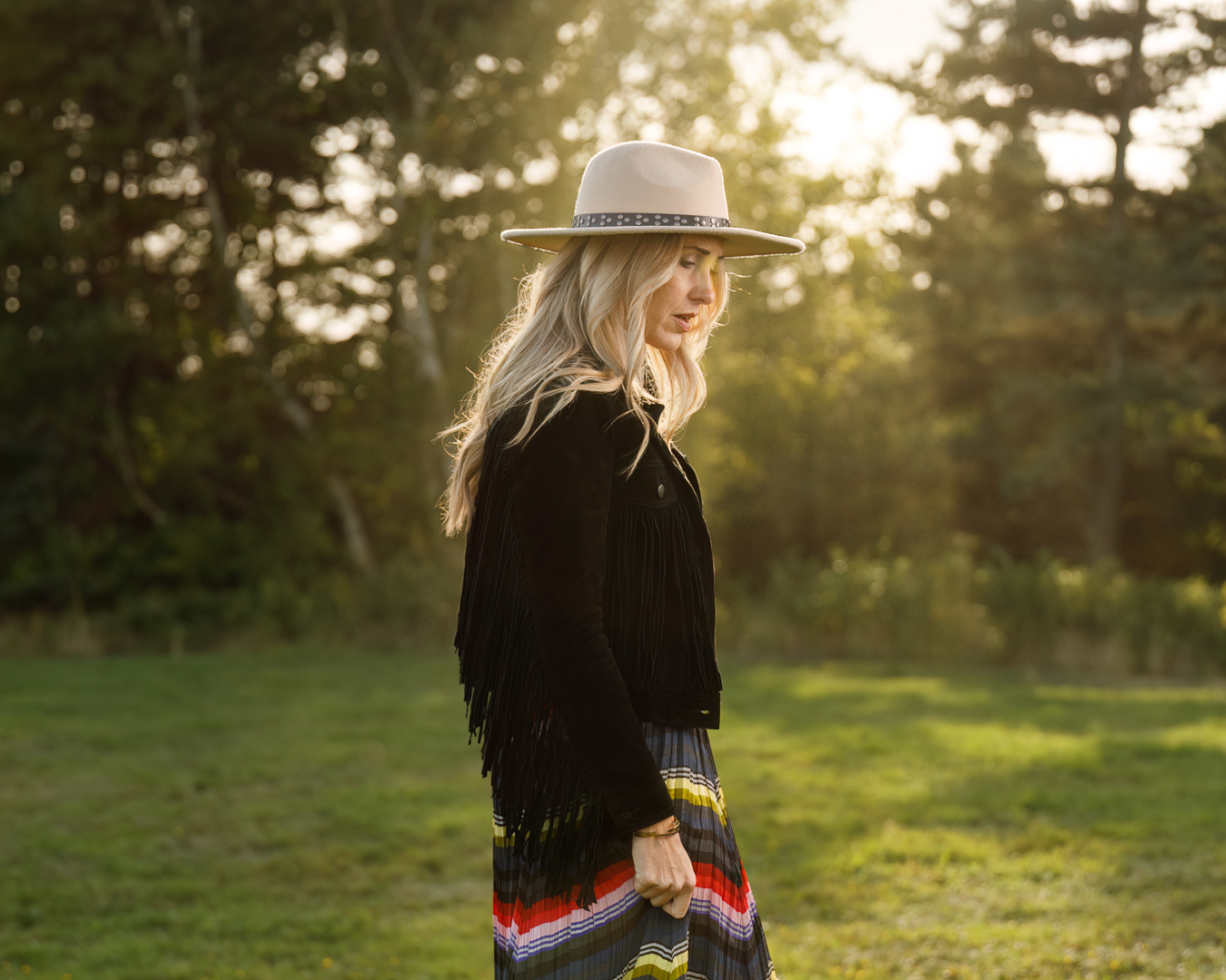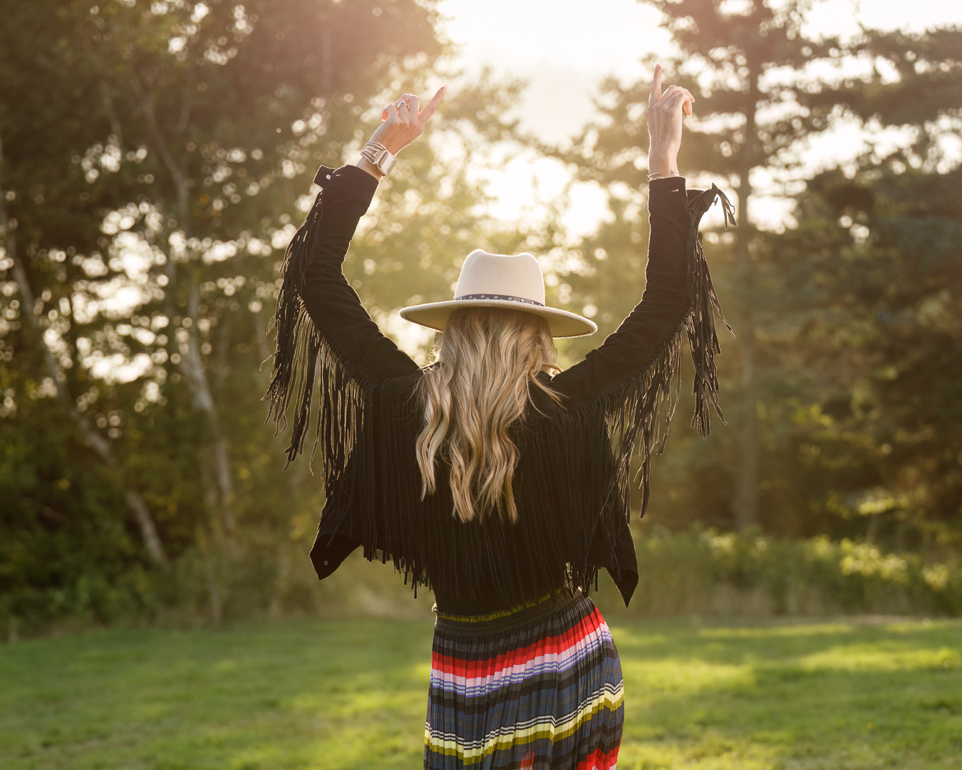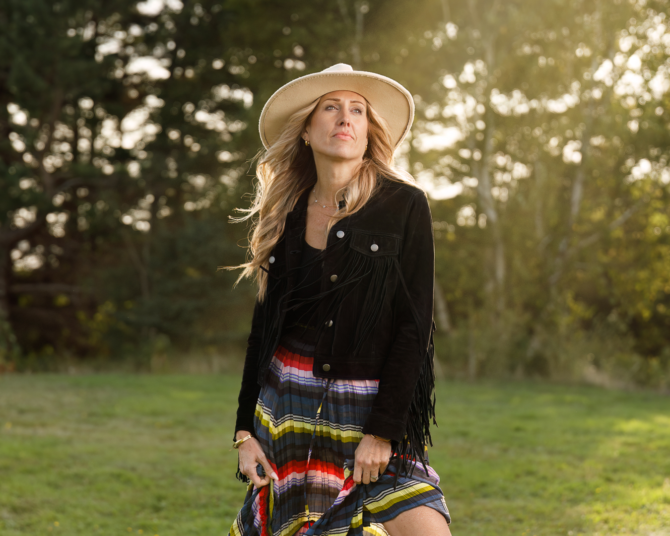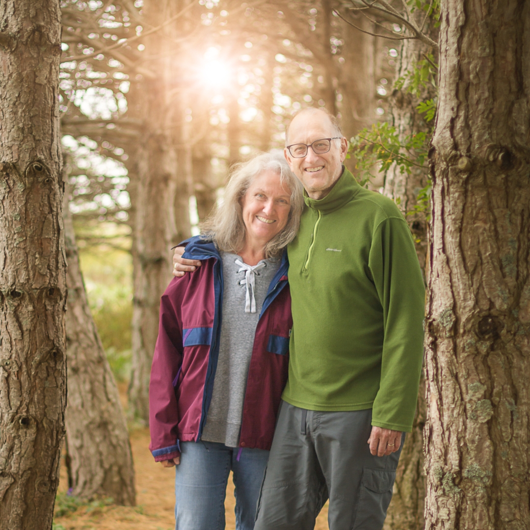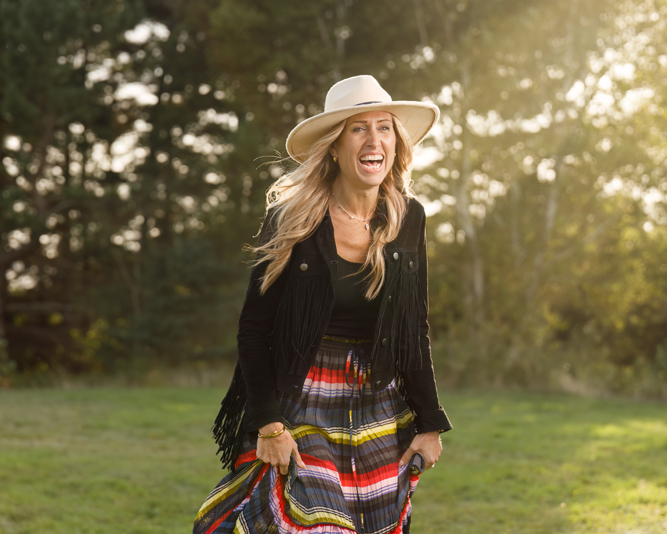 Backlit Portraits: Observe the position of the light, then position the subject and your camera to have the light slightly on an angle behind the subject (make sure there is no harsh light spilling on the side of the subjects face) and at the same time a dark background. Later or early (lower angle) in the day light is the ideal time for backlit photography. The backlight provides a rim light to separate the subject from the background and more drama for the image. Many of the following images were made at Camp Create 2024 using an off camera flash in collaboration with the following models; Kimberly Rashed (hat & black suede jacket) a photographer/model based in Prince Edward Island, Adriana Nunes (beige and white outfit on beach) a model based in Prince Edward Island, and Janelle, (Anne of Green Gables) a model/actress from Havenwood Dance in Prince Edward Island. The next two images are of my wife and photographer Darlene Awalt , with the first in the leopard camo top was setting up an off camera flash at a photo shoot on Graves Island Nova Scotia and the image with her blue top was using all natural light with some post processing. The final image, using natural light and some post processing, of our friends in their treasured pine tree stand at their summer cottage which since the time the photo was taken, has been mostly destroyed by hurricanes and porcupines.