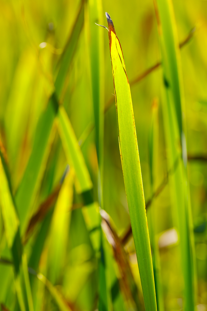In Nature: Below are backlit natural light examples of nature; Cattail grass, wetland grass, and maple leaves. These images were mostly shot using a zoom lens with an aperture between f/8 and f/11, a fast enough shutter speed to freeze the subject and the ISO setting based on exposing for the highlights. Notice in most cases a darker background, and the background is further away than the subject to help make the subject stand out. In the cases where the background is lighter, push the exposure of the background as much as possible, then consider having a subject that is a bit darker. Notice how the backlight brings out detail and texture in the leaves and blades of grass.