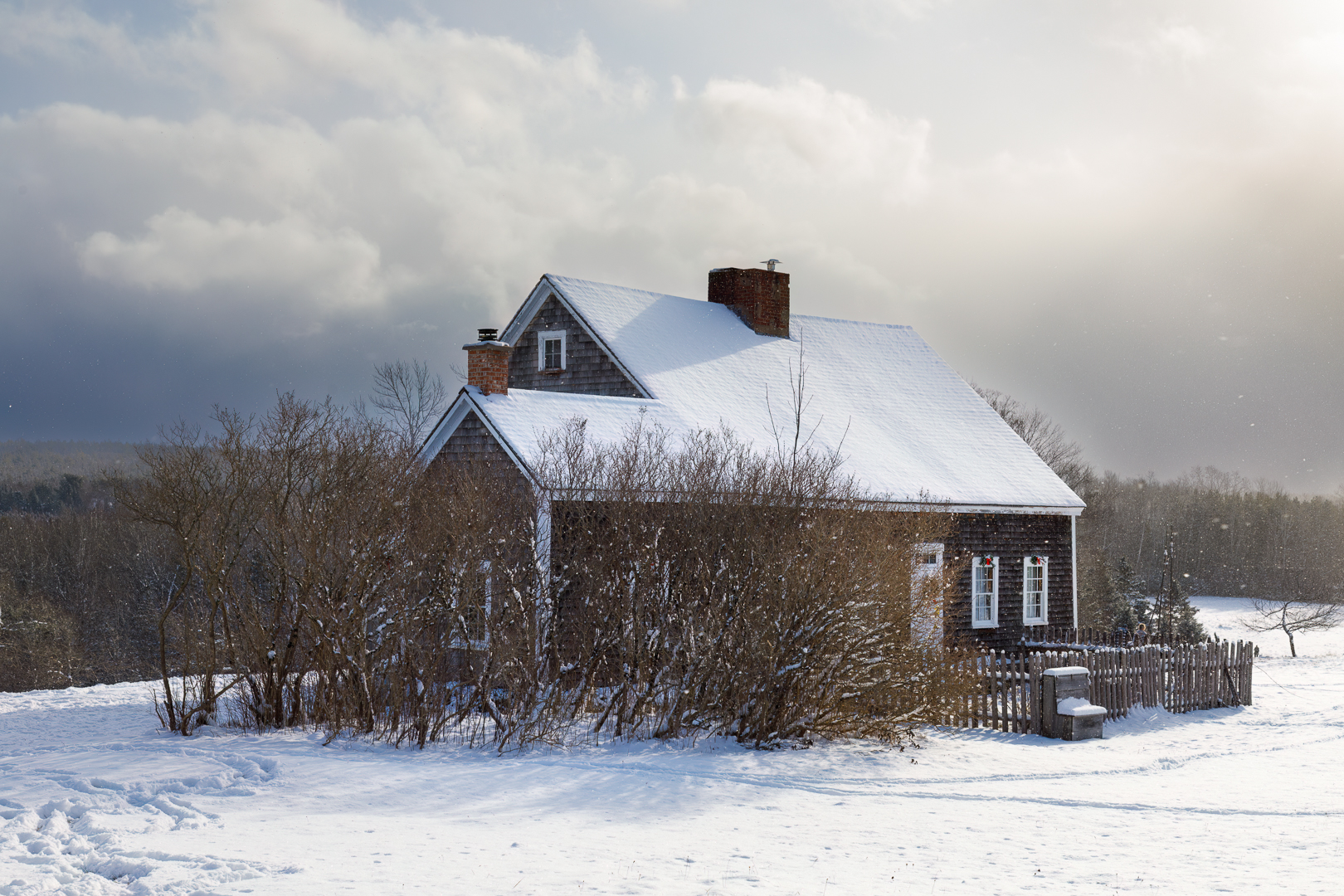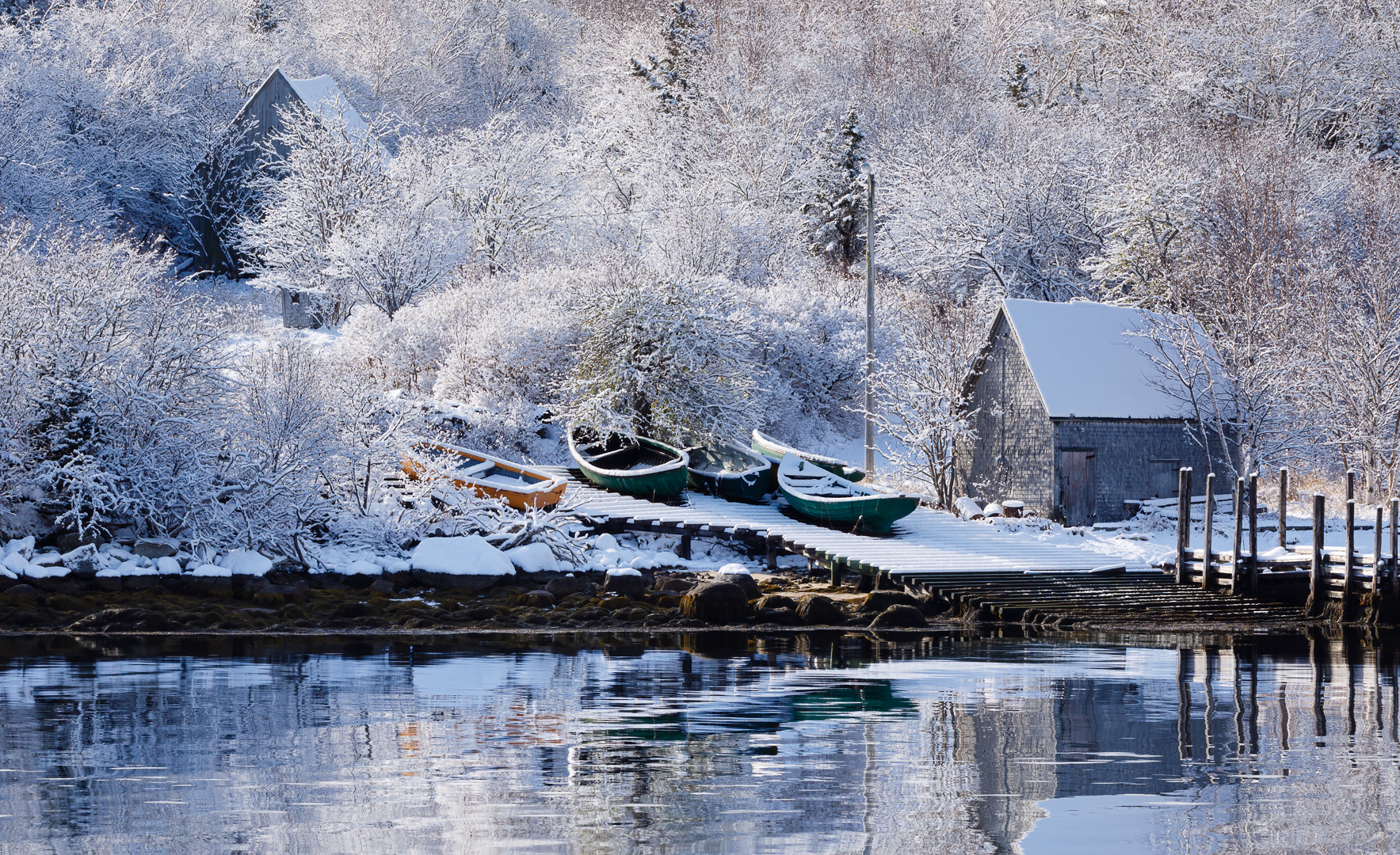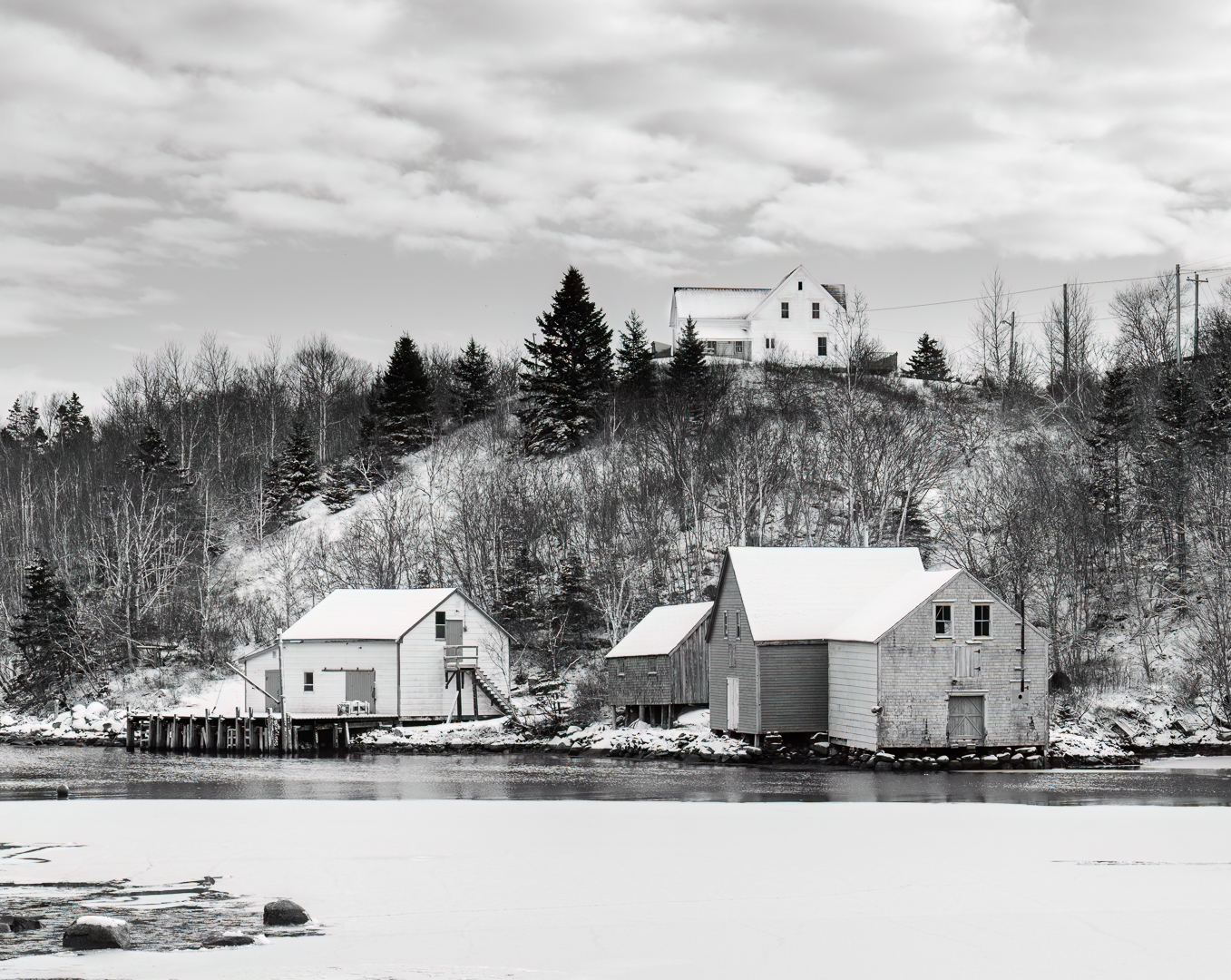 Local Area: Below are some sample photos from our local area; Aspotogan (Red House, Monochrome House top of the hill with Fishing Buildings), Awalt Lake (Snow waves, Mist in the Trees), Northwest Cove (Boats on a launch), Bayswater (Aspotogan Mountain and Bayswater Pod), and Blandford (Deer in the snow). The two images of; the sheep and old style home were taken at the Ross Farm Museum in New Ross.